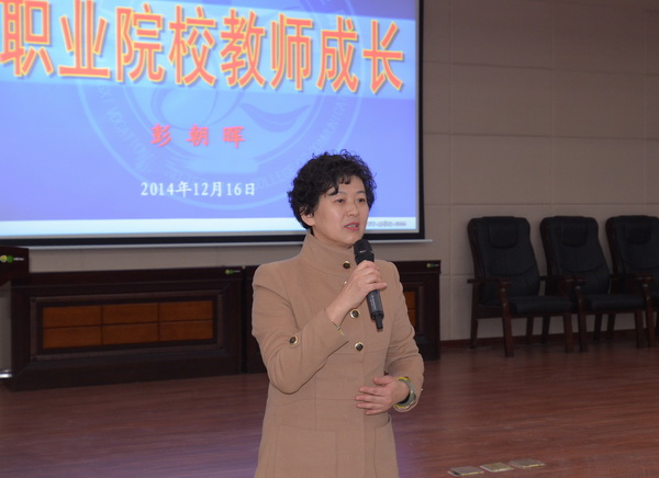 彭教授结合自身的从教经历,总结出自己在职业教育教师岗位上应该保持年轻的心态,不以长者自居,做学生的朋友;坦诚做人、扎实做事(不计较眼前的利益)等10个方面的一些思考。接着,他从意识形态、工作内容、教学效果三个层面讲述职业教育对教师的要求。随后,他从“五双”即“双德”、“双能”、“双勤”、“双绩”、“双廉”诠释了何谓真正的“双师素质”教师,指出“尽快让自己成为一名真正的‘双师素质’教师”是职业教育教师成长的方向。专题讲座中,彭教授语言诙谐生动,现场气氛和谐,不时响起阵阵掌声。