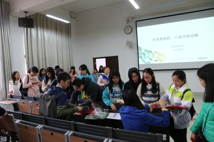 本次讲座不仅使学生们了解四、六级考试的具体形式流程、方法技巧和解题策略。还让学生们意识到应有针对性的投入到英语学习中去,同时也增强了学习英语的信心。