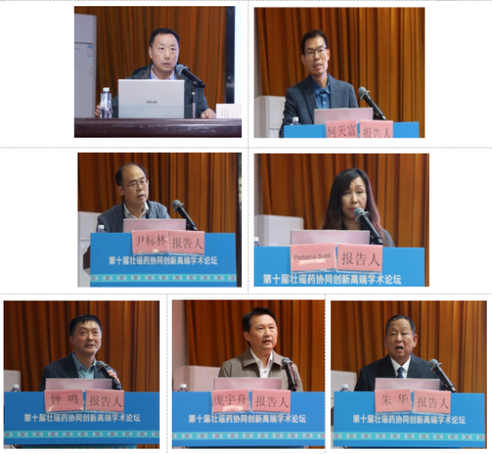论坛主会场还邀请了南京中医药大学刘训红教授、广西中医药大学何天富主任药师、华南理工大学尹标林教授、泰国孔敬大学研究员Pattama Surit博士、广西中医药研究院钟鸣教授、中国民族医药学会副会长庞宇舟教授、广西壮瑶药重点实验室朱华教授等全国知名专家先后作了学术报告,王孝勋研究员、甄汉深教授、傅鹏教授、苏健研究员分别主持了报告会。与会专家学者畅所欲言,深入交流,相互借鉴,共同为推动中医药壮瑶医药传承创新发展,为健康广西、健康中国建设贡献力量。