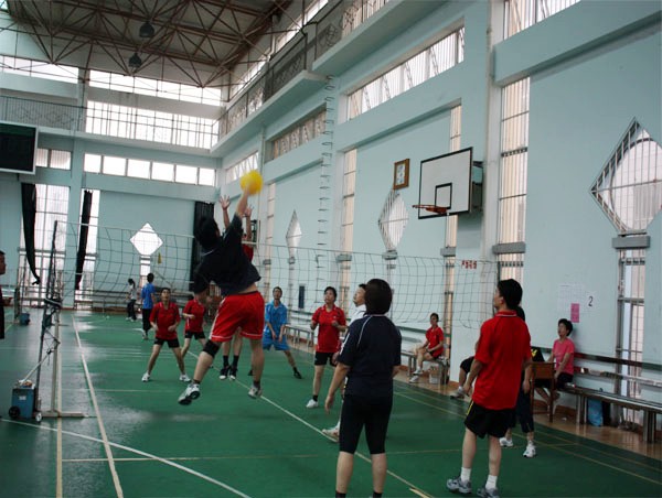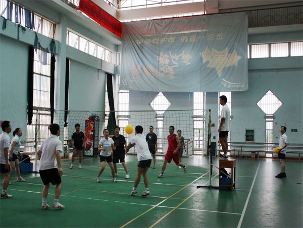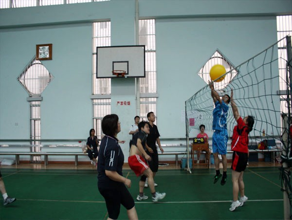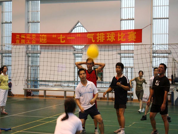 为庆祝建党89周年,增强党组织凝聚力,丰富教职工的文体生活,学院直属党委、工会于6月22日至25日在学院体育馆举行了迎“七一”气排球友谊赛。直属党委、工会所辖8个部门11个党支部积极组队参加,比赛采用三局两胜的方式进行。每一轮比赛都竞争激烈,赛场上到处洋溢着团结、拼搏、参与的气息,场上队员奋力拼搏,场下的啦啦队也不闲着,呐喊助威,异常活跃。经过三天的比赛,外语部获得冠军,成人教育学院教工队、图书馆、体育部、人文社科学院学工队等均获得好成绩。