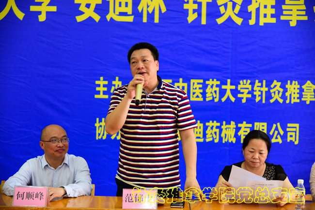 董塔健在讲话中表示,针灸推拿技能竞赛是我校学生课外活动中的一项品牌活动,是展示我校学生针灸推拿技能的重要平台。希望同学们把个人的事业发展与传承我国中医传统文化相结合,自觉把青春梦融入中国梦,书写出属于自己的精彩人生。
