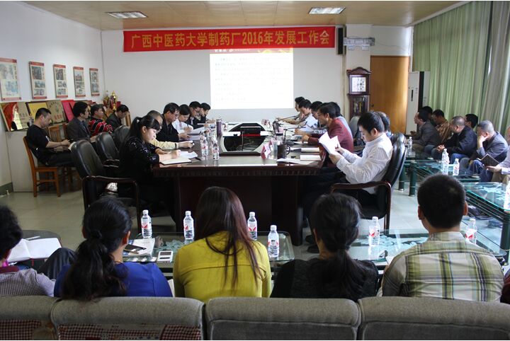 2016年3月9日下午,制药厂召开2016年发展工作会议。学校副校长庞宇舟教授出席会议并作重要讲话。制药厂全体厂领导、中层干部、班组长、销售公司片区经理及离退休党支部支委等约60人参加了会议。会议由制药厂党委书记朱智德同志主持。