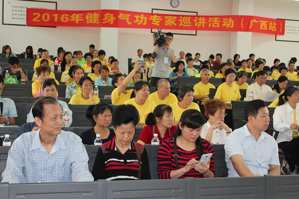 4月27日-28日,2016年健身气功专家巡讲活动(广西站)在广西中医药大学仙葫校区举办。本次活动由国家体育总局健身气功管理中心、中国健身气功协会主办;广西社会体育运动发展中心、广西中医药大学承办,旨在为健身气功骨干创造和专家学习、交流的机会,提高骨干的理论知识和技能水平。前来参加学习人员为来自全区各市健身气功站点负责人和指导员,共计200人。另外,广西中医药大学约有100多名学生进行了旁听。