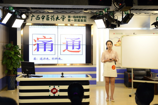 2016年4月27日下午,决赛在医院第一生活区教学楼3楼录播室举行,并同步在第一临床医学院教学云平台上网络直播。广西中医药大学副校长罗伟生亲临比赛现场指导并担任大赛评委,担任竞赛评委的还有广西中医药大学教务处处长唐梅文、广西中医药大学教师教学发展中心主任周江煜及第一临床医学院教学督导专家等。参加本轮决赛的选手为初赛中脱颖而出的6名教师,分别是急诊教研室邓海霞老师、妇产科教研室张华老师、儿科教研室王丹谊老师、护理教研室何锦玉老师、中内教研室谭璐璐老师和针灸教研室胡苗苗老师。比赛从教学目标、教学设计、教学手段、教学效果及综合素质等方面展开,比赛过程中,参赛教师各具特色,运用创造性的教学方法,充分利用多媒体的多样性,采用图片、视频、动画等多种直观形成,注重与学生互动交流,在轻松愉快的教学氛围中传授知识,充分展现自己的专业技能,展现自我风采。大赛吸引了不少老师、学生前来观摩。经过紧张激烈的过程,邓海霞老师获得了高级组一等奖、胡苗苗老师获得了初中级组一等奖。