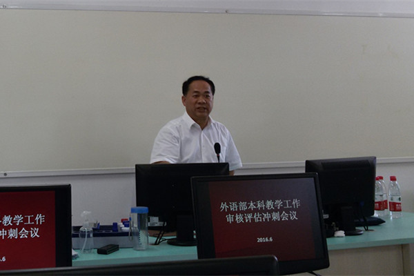 2016年6 月3日上午,距离教育部对我校本科教学工作审核评估仅有10天。为了更好地推进落实本科教学工作审核评估工作, 外语部本科教学工作审核评估冲刺会议在仙葫校区2栋教学楼5楼505教室举行。罗伟生副校长出席会议并讲话,外语部主任陈立群主持会议。