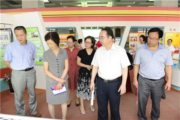 检查组先到本科教学工作审核评估专家进点时的路线进行指导:第一临床医学院院史展、八桂名医馆、壮医特色门诊等具有浓郁文化特色和体现教学成果的场所。