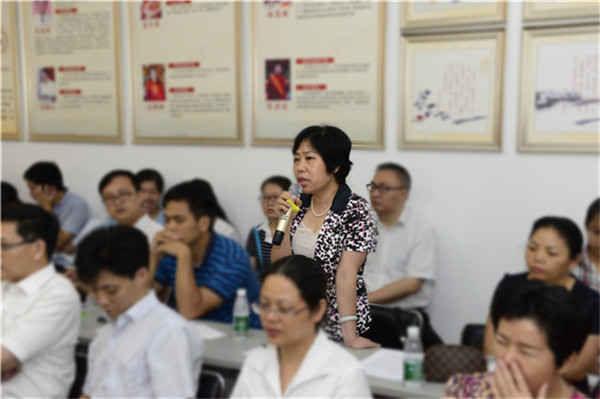 本科教学工作审核评估是当前学校和第一临床医学院的工作重心,关乎学校和第一临床医学院的质量声誉和社会地位。为全面检阅第一临床医学院迎评工作情况,确保顺利通过教育部的审核评估,2016年6月7日下午,广西中医药大学党委副书记、纪委书记杨连招,学校党委组织部部长李中华、教务处副处长刘武等一行到第一临床医学院进行本科教学工作审核评估迎评工作检查。第一临床医学院院长黄贵华、党委书记李敏智、党委副书记、纪委书记、副院长吴西西、副院长卢健棋、桂雄斌、周建国、钟远鸣等领导陪同检查,学院全体教研室主任及秘书、临床科室主任、相关职能科室主任、学生代表等共计80余人参加了本次检查汇报会和模拟座谈会。