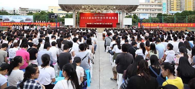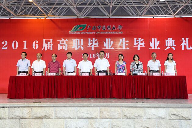 广西中医药大学2016届高职毕业生毕业典礼于6月30日晚在明秀校区篮球场隆重举行。学校副校长罗伟生教授,各单位、各部门领导、教师代表、合作企业代表、辅导员老师、班主任、部分毕业生家长以及920多名毕业生出席了本次典礼。此次典礼由学校总会计师何刚亮主持。
