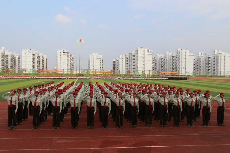 在雄壮的国歌声中,大会拉开帷幕。首先,在承训部队教官的陪同下,董塔健副书记检阅了参训学生,经过刻苦训练,同学们精神振奋,士气昂扬,“为学校争光”的口号响彻校园。随后,参训学生方队迈着整齐的步伐,喊着响亮的口号,伴随着雄壮的军乐,迈着坚定的步伐,精神抖擞地通过主席台。分列式结束后,参训学生方队在教官的指挥下,分别进行了队列表演、匍匐刀术表演、警棍术表演。参训学生斗志高昂、步伐整齐、口号嘹亮,全面展示了军训的丰硕成果和当代大学生朝气蓬勃、奋发向上的精神风貌,赢得了在场师生阵阵掌声。