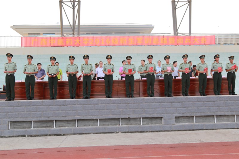 2016年9月23日下午,我校2016级新生军训汇报表演暨总结表彰大会分别在仙葫校区、明秀校区隆重举行。学校党委副书记董塔健教授、广西军区教导大队杨丁中校及相关部门的领导出席了这次大会。总结大会由学校武装保卫部韦克权部长主持。