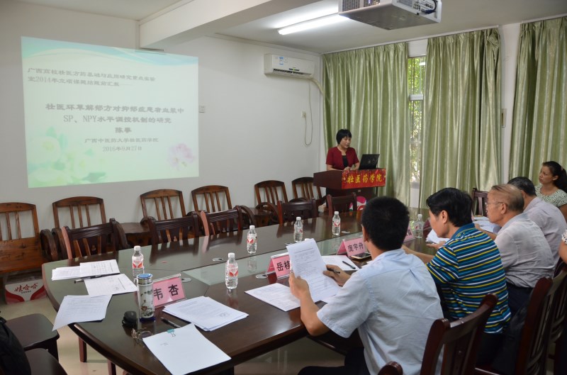 2016年9月27日,我校壮医方药基础与应用研究重点实验室,在壮医药学院召开2014年、2015年立项课题进展汇报会。参会的有广西中医药大学副校长、实验室主任庞宇舟,科技处岳桂华副处长、壮医药学院韦杏副院长、广西民族医药研究院黄汉儒教授、广西中医药研究院刘布鸣教授及2014年、2015年立项课题的主要负责人。