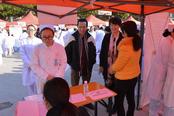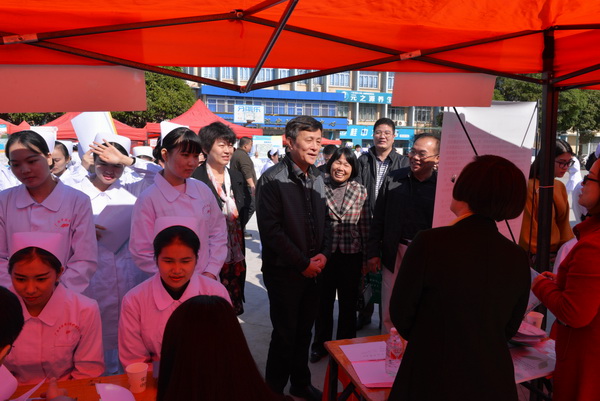 由广西中医药大学招生与就业处主办、护理学院承办的“广西中医药大学2017届护理专业毕业生就业双选会”,经过细致的前期筹备,于2016年12月1日8:30-17:00在明秀校区篮球场顺利召开。广西中医药大学副书记董塔健教授亲临双选会现场指导工作,对用人单位来我校招贤纳士表示热烈的欢迎。