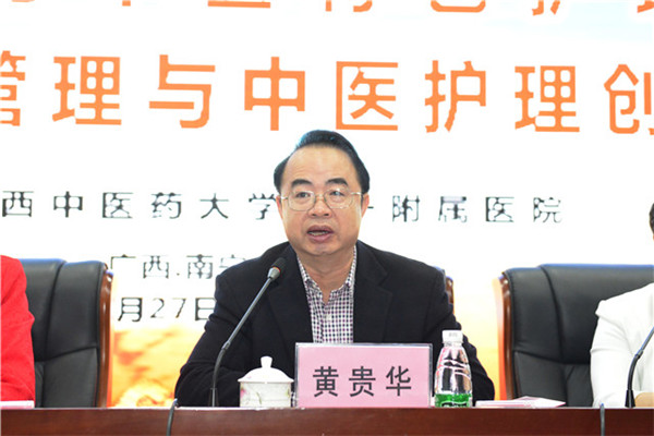 为提高全区中医护理理论和技能水平,搭建国内中医护理先进经验交流平台,树立广西中医护理技术在全国中医护理学科中的地位,推广一附院中医护理特色技术,充分发挥一附院护理学科的辐射引领作用,一附院于2016年12月27日~30日在一附院多功能学术厅举办2016年全国中医护理管理与中医特色护理培训班暨广西中医护理管理与中医护理创新研讨班。广西中医药大学党委副书记、纪委书记、广西护理学会理事长杨连招教授、中国中医科学院广安门医院护理部主任张素秋教授、一附院院长黄贵华教授、党委书记李敏智教授、党委副书记、纪委书记、副院长吴西西教授、副院长卢健棋教授、周建国教授、钟远鸣教授等领导出席培训班的开班仪式。来自区内外各级医院护理副院长、护理部主任、护士长、护理骨干600多名护理人员参加了学习班。开班仪式由一附院党委副书记、纪委书记、副院长吴西西主持。