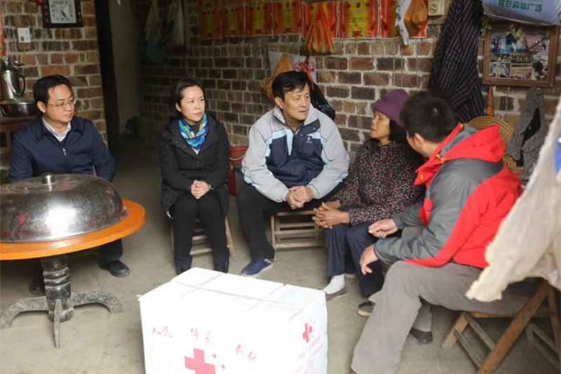 在城厢镇良安村,董塔健副书记一行慰问了驻村第一书记邓刚以及6户贫困户,并来到内温屯贫困户家中深入了解其家庭情况,向他们送上了春节慰问品和美好祝福;董副书记仔细询问了贫困户脱贫摘帽计划,对村中存在的安全隐患进行了排查,提出了解决办法。在都结乡念潭村,董塔健副书记一行慰问了驻村第一书记范小明以及6户贫困户,并来到该村无房户安置房、村事务中心和人畜分离项目建设点进行现场指导。在欧里村,董塔健副书记一行慰问了驻村第一书记梁建文以及6户贫困户,并来到位于马里屯的欧里村饮水工程打井点,现场指导做好水质化验、周围环境保护等工作。在联伍村,董塔健副书记一行慰问了驻村第一书记唐明以及60户贫困户,并来到陇黎屯贫困户家中慰问,第一附属医院还向村委捐赠了3台电脑。在新盏村,董塔健副书记一行慰问了驻村第一书记粟俊以及6户贫困户,并来到贫困户家中慰问,细致入微地了解了其家庭情况,向他们致以新春的祝福。在四联村,董塔健副书记一行慰问了驻村第一书记黄晓东以及6户贫困户,并与爱心人士一起向该村10名学生发放了慰问金、学习用品以及粮油等,鼓励他们好好学习,争取进步,并祝他们新春快乐。