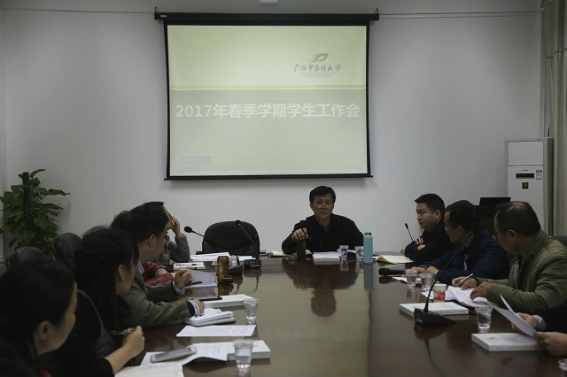 会上,各学院分管领导首先介绍了本学院2016年学生工作亮点、特色和2017年工作计划。接着,学工处部(处)副部(处)长罗晓燕、吴健文分别就新学期加强我校学生意识形态教育、学生思想政治教育、易班校本化研究建设、学生手册修订、学生资助等工作进行了部署。随后,团委杨删副书记对学校团委对本学期工作重点进行了介绍。