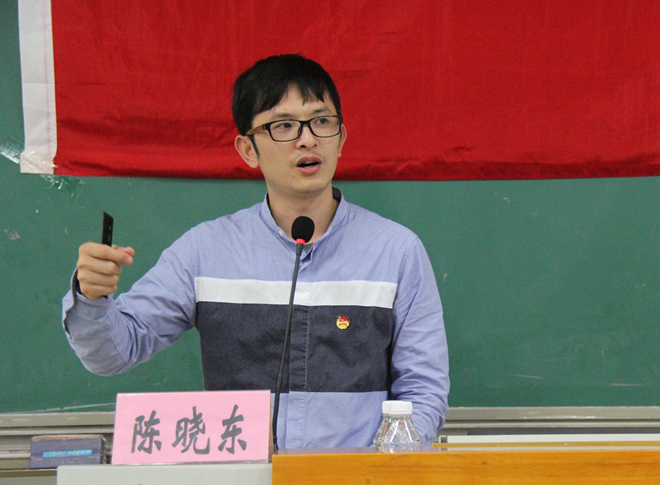 陈晓东作了简单幽默的自我介绍后,围绕学生干部的听、说、读、写四个能力展开了讲述。