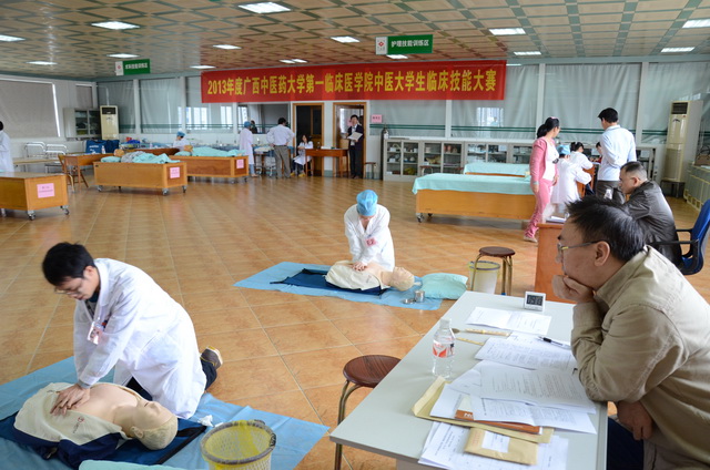 2013年11月12日,2013年广西中医药大学第一临床医学院中医大学生临床能力竞赛成功举办。上午8点,在医院医技楼7楼第一会议室举行了简短的比赛开幕式,第一临床医学院党委副书记、纪委书记、副院长吴西西出席开幕式并讲话。开幕式由教学部主任黄彬主持,大赛评委代表、教学部老师、参赛选手及医学类本科实习生代表近100人参加了开幕式。