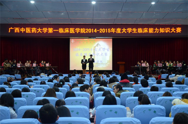 为巩固同学们的中医基础知识,提高广大同学的临床能力,第一临床医学院于2015年1月10日下午,在广西中医药大学第一附属医院5楼学术多功能厅举办了“第一临床医学院2014—2015学年大学生临床能力知识竞赛”。