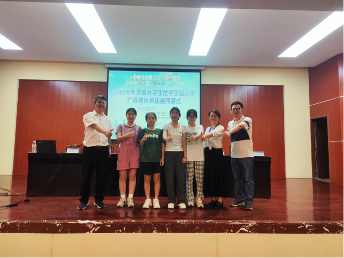 2024年全国大学生化学实验竞赛广西赛区选拔赛于6月21日至23日在广西民族大学(思源湖校区)举行。此次竞赛汇聚了全区28所高等院校的112名在校学生。比赛分为实验操作与笔试两大环节,涵盖无机化学、有机化学、分析化学和物理化学四大领域,旨在全面检验参赛者的综合素质。药学院4名学生参赛,指导老师是黄宏妙、郭占京、杜成智等三名化学类教师。