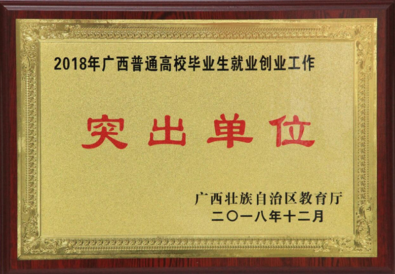 2018年广西普通高校毕业生就业创业工作“突出单位”牌匾