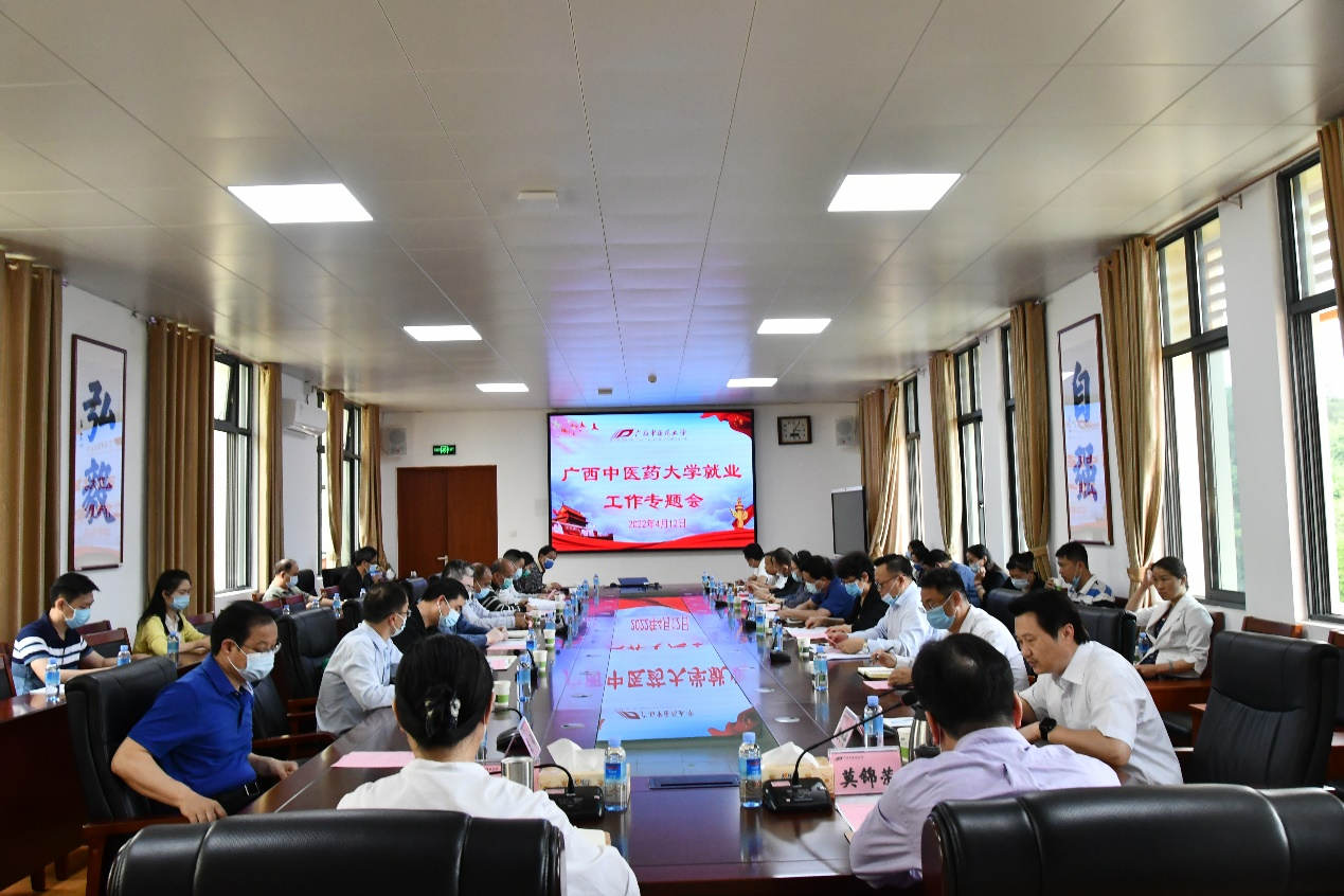 4月12日下午,我校在仙葫校区合德楼525会议室召开2022届毕业生就业工作专题会,校党委书记莫锦荣,校党委副书记、校长姚春,校党委副书记庞宇舟、副校长戴铭出席会议,党办、校办、招就处、学工处、教务处、武保部、团委等职能部门负责人、各学院党政负责人等40余人参加会议,会议由庞宇舟主持。