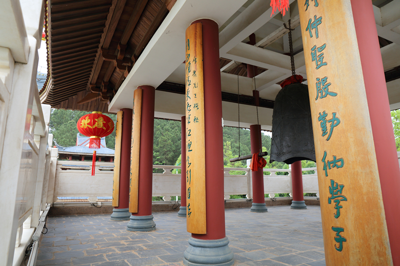 晨钟暮鼓楼两侧种植有菩提树、五味子、使君子等植物。五味子为木兰科植物,古医书称它荎蕏、玄及、会及,最早列于神农本草经上品中药,能滋补强壮之力,药用价值极高,有强身健体之效,与琼珍灵芝合用治疗失眠。
