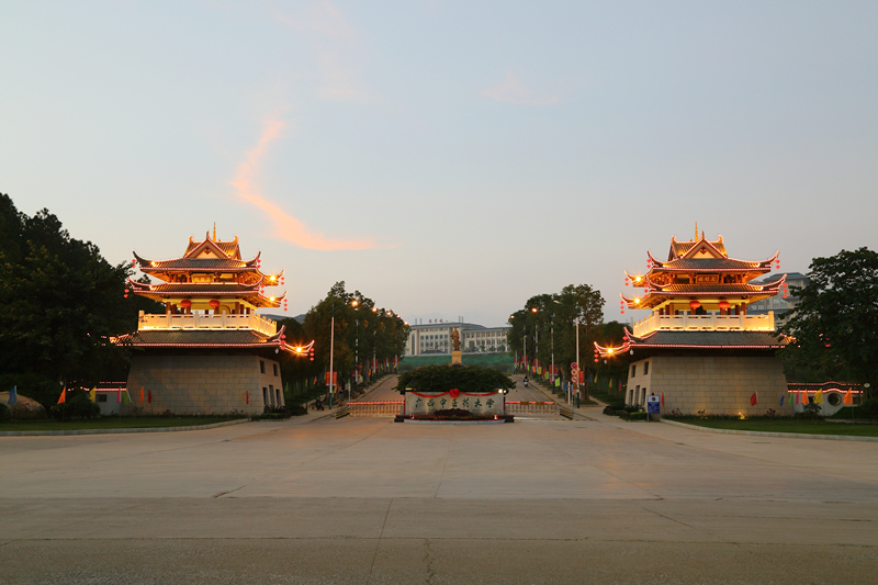 仙葫校区主校门名叫晨钟暮鼓楼校门。晨钟暮鼓是我国古代的一种报时方式,缘起于先秦,后多比喻使人警觉醒悟,也形容时光之流逝,此可引伸为警醒中医学子,振兴中医,任重道远,当珍惜时光,自强不息,与时俱进,生动地展现了我校传承创新、兼容并包的崭新风貌。联曰:“晨钟暮鼓睇逝水策你我学子朝乾夕惕遒绍往圣;碧瓦明甍迴流光显汉唐宗风春发秋容敷被杏林。”