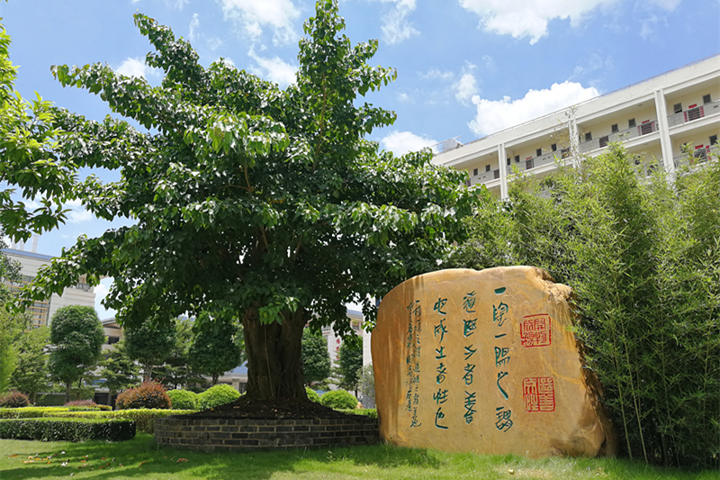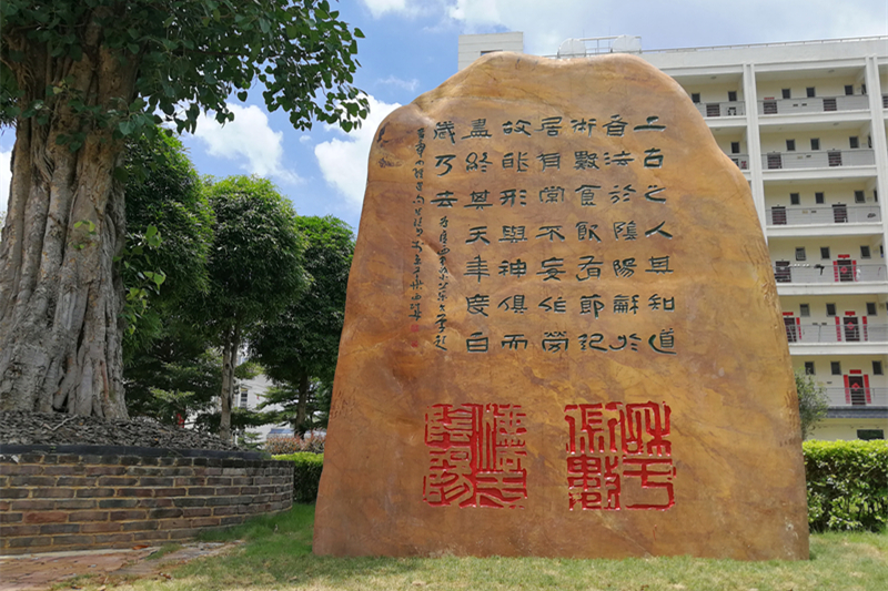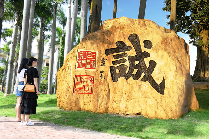 位于教学楼前大草坪,毗邻椰林,由卢中南先生为我校题写。《中庸》认为:“诚者天之道也,诚之者人之道也。”