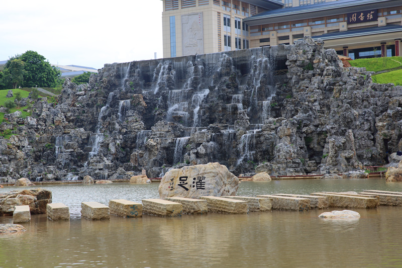 “濯足”石刻位于阿平湖亲水石道,由张继先生为我校题写。语出《孟子·离娄上》:“沧浪之水清兮,可以濯我缨;沧浪之水浊兮,可以濯我足。”比喻清除世尘,保持高洁。