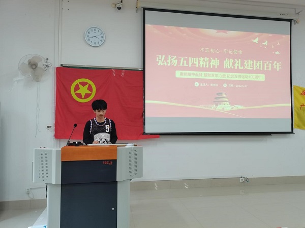 活动伊始,全体成员起立奏唱团歌、重温入团誓词。活动中,黄伟远同学带领同学们一起重温共青团的百年历史。活动中,韦淑萍同学作为身边的榜样为同学们带来演讲,青年人不应该吃苦的年纪选择安逸,接续为“中国梦”而奋斗。各宿舍带来红歌、手抄报、朗诵等表演里表达同学们对建团百年的美好祝愿。活动尾声,全体同学分为四组进行“党史团史”知识比赛,由你画我猜和听歌识曲两部分组成。“四渡赤水”、“飞夺泸定桥”、“秋收起义”等让人熟悉的字眼,体现了前辈们对祖国的热爱,而我们身在和平国家,更要懂得其中的来之不易,居安思危。对于此次活动,班主任张强老师进行了点评:青年人是未来国家建设的中流砥柱,我们应该学好专业知识,让自己更加有底气。