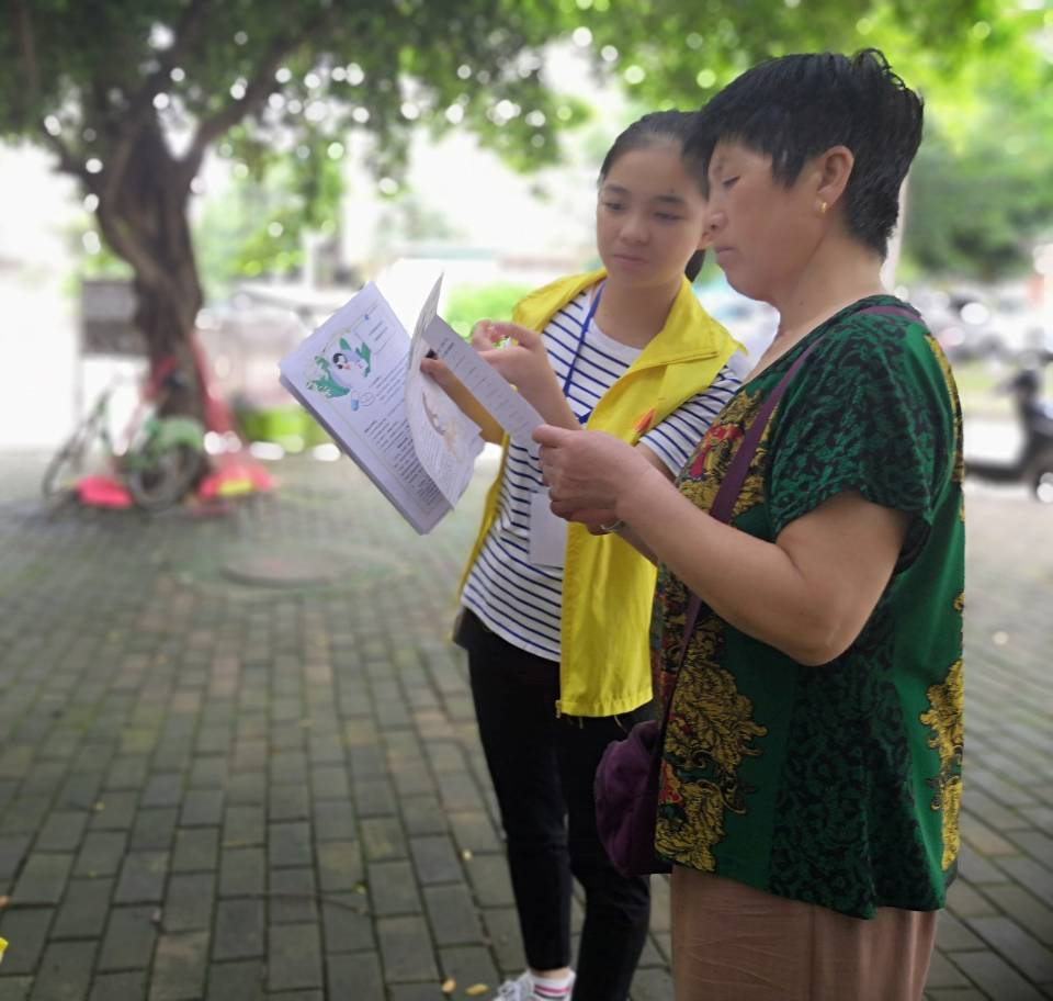 上午9点,社会实践团队到达了南宁青秀区金葫社区,并分三组开展活动。驻守大本营的小组成员向社区居民们宣讲保健品相关的常识和陷阱,并为前来大本营填写问卷的居民们献上夏日清凉爱心――风油精和硫磺皂,缓解居民们夏日被蚊虫叮咬的痛苦。另外两个小组的成员则在小区附近进行了视频采访和问卷调研,主要调研居民对保健品常识和保健品的了解程度并宣讲保健品的选择知识。
