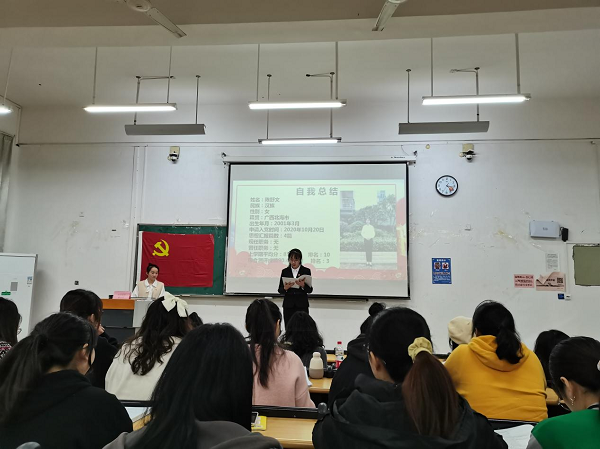 12月5日下午,药学院食品学生党支部在仙葫校区教学楼2-206召开接收预备党员暨预备党员转正大会。会议由30余人参加,大会讨论且通过了李德枭等5名发展对象的入党。同时,讨论且通过了刘雨婷等4名预备党员的转正申请。会上,5名新党员和4名转正党员进行表态,纷纷表示会正视自身不足,努力发挥一名党员的先锋模范作用。