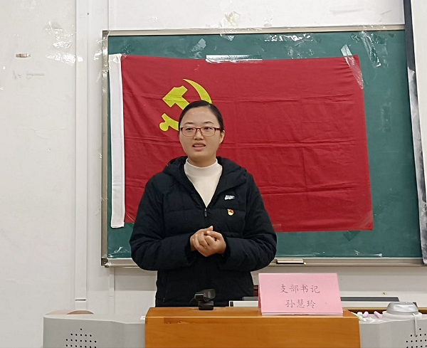 会中,支部书记孙慧玲发言中指出,支部成员应时刻牢记为人民服务宗旨,争取做“功在当代,利在千秋”的党员,并鼓励支部成员树立明确的目标,努力拼搏,丰富大学生活。