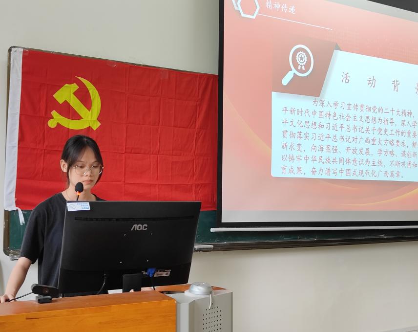 活动伊始,主持人带领党支部成员对党的政策方针进行了学习,并从政策、服务供给、医疗救治、产业发展四个方面介绍了中医药的发展现状,同时讲述了俞作豫、韦拔群等广西红色人物的故事,让英雄事迹渲染红色信念。接着,各小组进行微视频展示,各小组代表分别从广西红色人物故事伴我成长、广西党支部成长路上的信仰等不同角度讲述了本小组作品的创作理念,将作品理念融入生活,让成长伴随信仰力量。最后,主持人对各小组进行颁奖。经合影留念后,本次党日活动圆满结束。