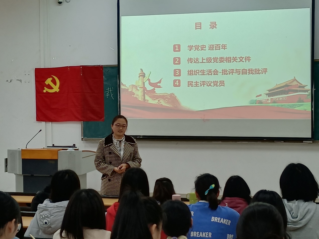 会议第一项,由孙慧玲为全体党员讲授《学党史,迎百年》专题党课,重点学习习近平总书记在党史学习教育动员大会上的讲话精神,希望全体党员通过党史学习,做到明理、崇德、增信、力行,并重点讲解东北抗联第一军总司令杨靖宇烈士的英雄事迹,强调党员要身体力行践行对党忠诚的政治要求。会议第二项,学习传达上级党委相关文件,向全体党员宣读了关于五起违反中央八项规定精神典型问题的通报文件,警戒同志们以反面典型为戒,严把思想关。会议第三项,孙慧玲做述职报告,报告支部2020年工作情况,通报支部存在的问题,随后组织全体党员开展批评与自我批评,支部党员同志从思想、工作、学习、生活等各方面深入反思,勇于直面自身存在的问题,诚恳地指出其他同志存在不足之处,以期共同成长,相互进步。会议第四项,开展民主评议党员,会议共评选出苏嘉福等9名优秀党员,陈超恒等19名合格党员。