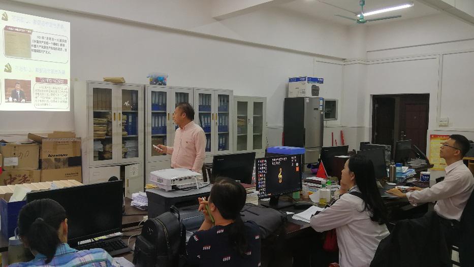 11月12日下午,有机党支部在有机化学教研室上“不忘初心、牢记使命”——立足岗位做贡献主题教育专题党课,以实际行动践行初心和使命,立足教学、科研岗位为党的教育事业做出应有的贡献。支部书记钟益宁、组织委员霍丽妮、纪检委员钟海艺以及党员李培源、郭占京、李春玲等支部党员参加党课学习,党课由支部书记钟益宁主讲。