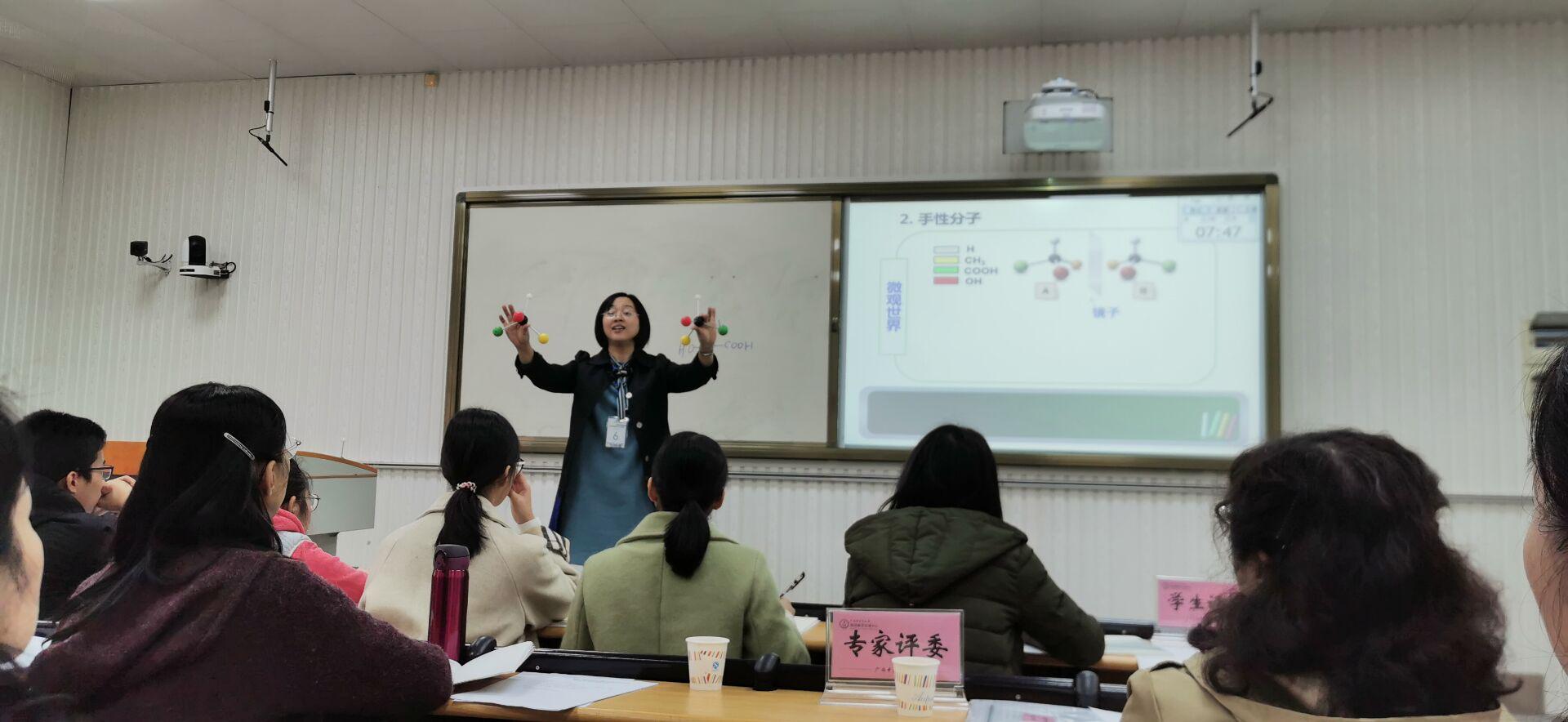 比赛现场,霍丽妮、贾智若和李培源三位青年教师充分发挥自己的优势,课前精心准备、课堂上充分展现自己的才华,在规定的比赛时间内一丝不苟、认真表演,赢得热烈掌声。