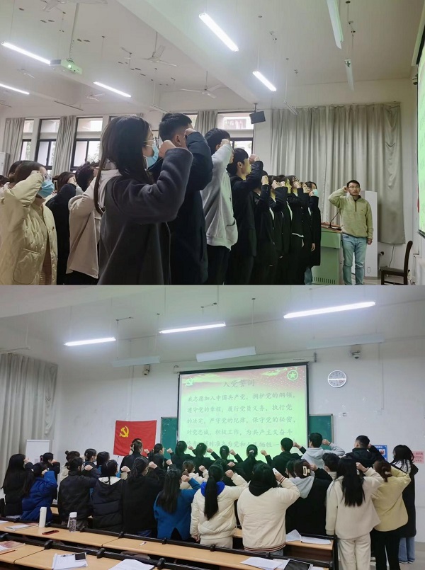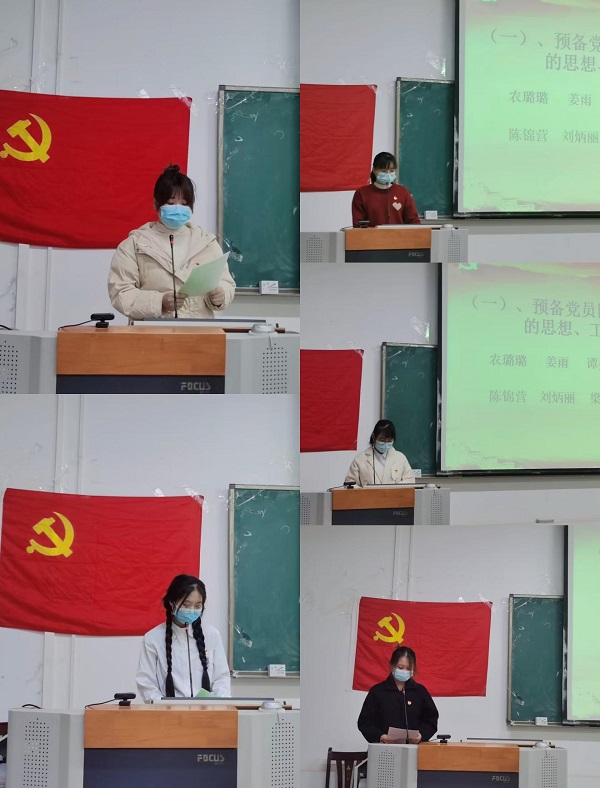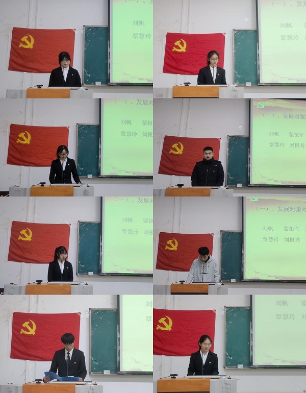 本次大会分为两个议程。第一项议程,刘帆等8名发展对象从对党的认识、入党动机等方面依次向党组织作出汇报,随后,入党介绍人就发展对象相关情况依次进行陈述及支部委员报告审查情况,经过不记名投票,与会党员举手表决一致同意接收刘帆等8名同志为中共预备党员。第二项议程,农璐璐等预备党员宣读个人转正申请,支委介绍其预备期的表现及考察情况,经过不记名投票,与会党员一致同意农璐璐等6名同志按期转正。会议最后,在支部书记黄鑫同志的带领下,党员同志们在党旗下庄严宣誓。