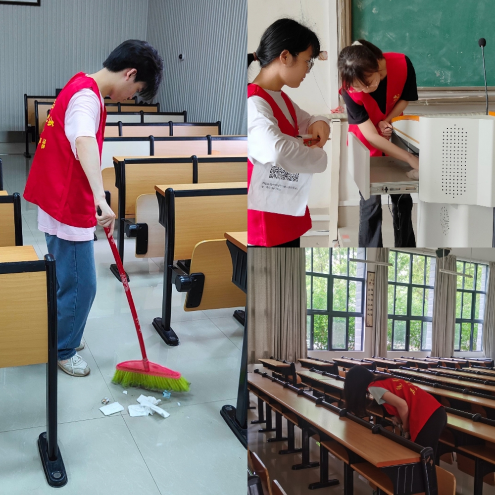 当日中午12:20,全体参与人员在教学楼正门集合完毕。活动开始前,黄鑫同志进行动员讲话,指出党员做好模范带头作用,切身投入到活动中,用实际行动贯彻“为师生办实事”精神。本次活动分为五个小组,由组长带领前往指定区域进行清扫,各小组内部分工合理,相互配合,对教室地面,黑板,桌椅等进行清洁,为同学们的学习打造了干净整洁的环境。
