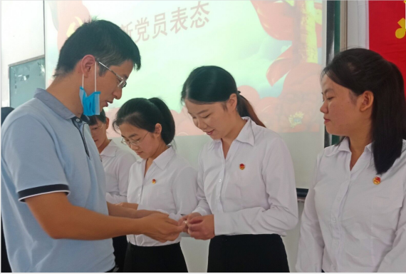 支部书记吴玉峰给新党员发党徽