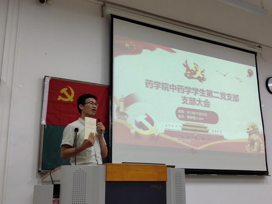 根据《广西中医药大学关于开展“不忘初心、牢记使命”主题教育实施方案》文件精神,为深入贯彻落实《药学院关于开展“不忘初心、牢记使命”主题教育实施方案 》,进一步加强党员主题学习,药学院中药学学生第二党支部于10月22日晚在教学楼2-204召开了支部主题教育大会,会议由支部书记凌勇威主持,25名党员及37名入党积极分子参加会议。