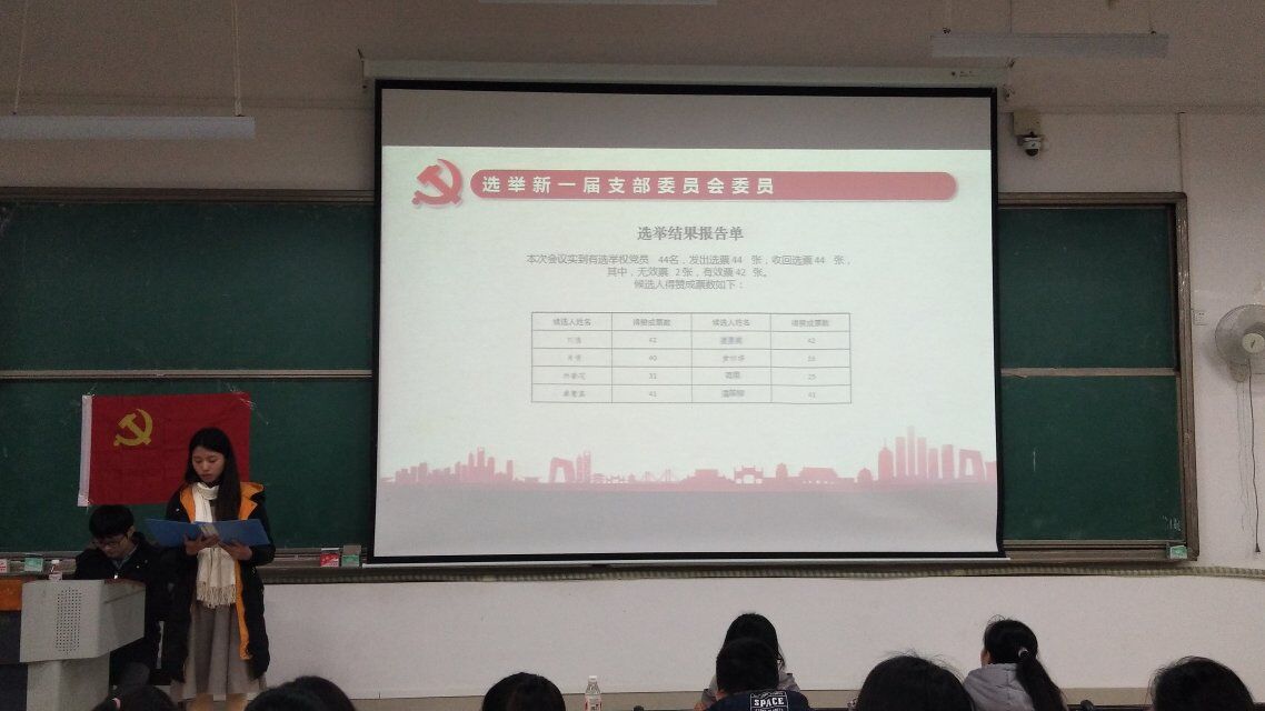 会上,首先主持人凌勇威向大会报告实到党员的人数,到会人数符合党章和基层党组织增补、调整选举的相应规定。其次支部正式党员审议通过选举办法、监票人、计票人名单,然后通过无记名投票方式选取产生支部委员。最后,支部书记凌勇威同志对此次会议进行总结,强调党员同志要加强自身的党性修养,加强党支部的组织建设工作,发挥党员的先锋模范作用。