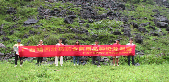 中药商品与药事管理教研室黄志其老师带队壮瑶民族药调研队到靖西进行壮药“药食两用”品种资源查活动 发布时间:2019-09-03 22:08:52 浏览次数:次 【字体:小大】 2019年7月15日至17日,为增进同学们对广西壮药“药食两用”品种的了解,我校壮瑶民族药调研队靖西分队在中药商品与药事管理教研室黄志其老师的带领下,赴广西靖西市进行壮药“药食两用”品种资源调查。 通过本次调查,同学们收集和了解到二十多种“药食两用”壮药,并将采集到的部分壮药压制成蜡叶标本,进一步提高同学们的动手能力。 黄志其老师与壮瑶民族药调研队学生合影 分享到: 【打印正文】