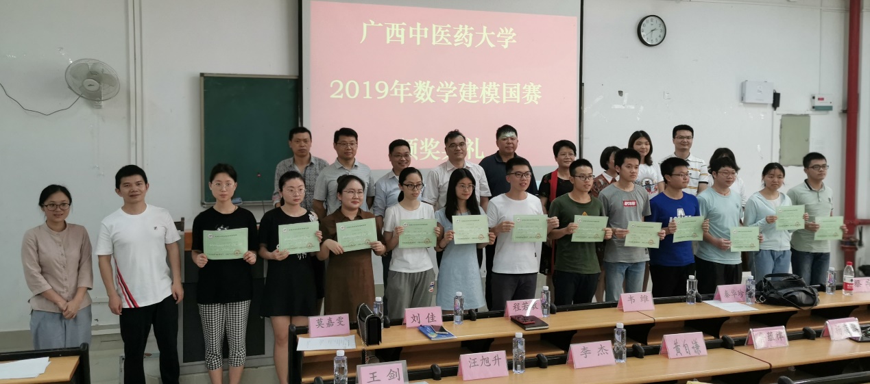 5月14日下午,为了表彰我校参加2018年全国大学生数学建模竞赛的同学,在仙葫校区教学楼2-105教室举办了2019年广西中医药大学数学建模竞赛颁奖典礼。