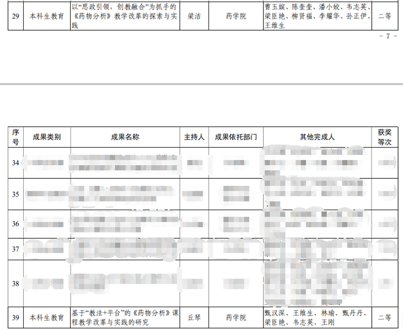 药物分析教研室梁洁老师、丘琴老师喜获我校教学成果奖 作者:图/文/陈奎奎 发布时间:2023-05-24 12:11:51 浏览次数: 次 【字体:小 大】 药物分析课程是药物分析教研室承担的主干课程之一,曾经获评广西精品课程。药物分析教研室老师近年来持续对药物分析课程开展教学改革研究,其中,教研室梁洁老师、丘琴老师主持的以“思政引领,创教融合”为抓手的《药物分析》教学改革的探索与实践、基于“教法+平台”的《药物分析》课程教学改革与实践的研究均荣获第十二届广西中医药大学教学成果奖二等奖。 图1 教学成果奖二等奖截图 分享到: 【打印正文】