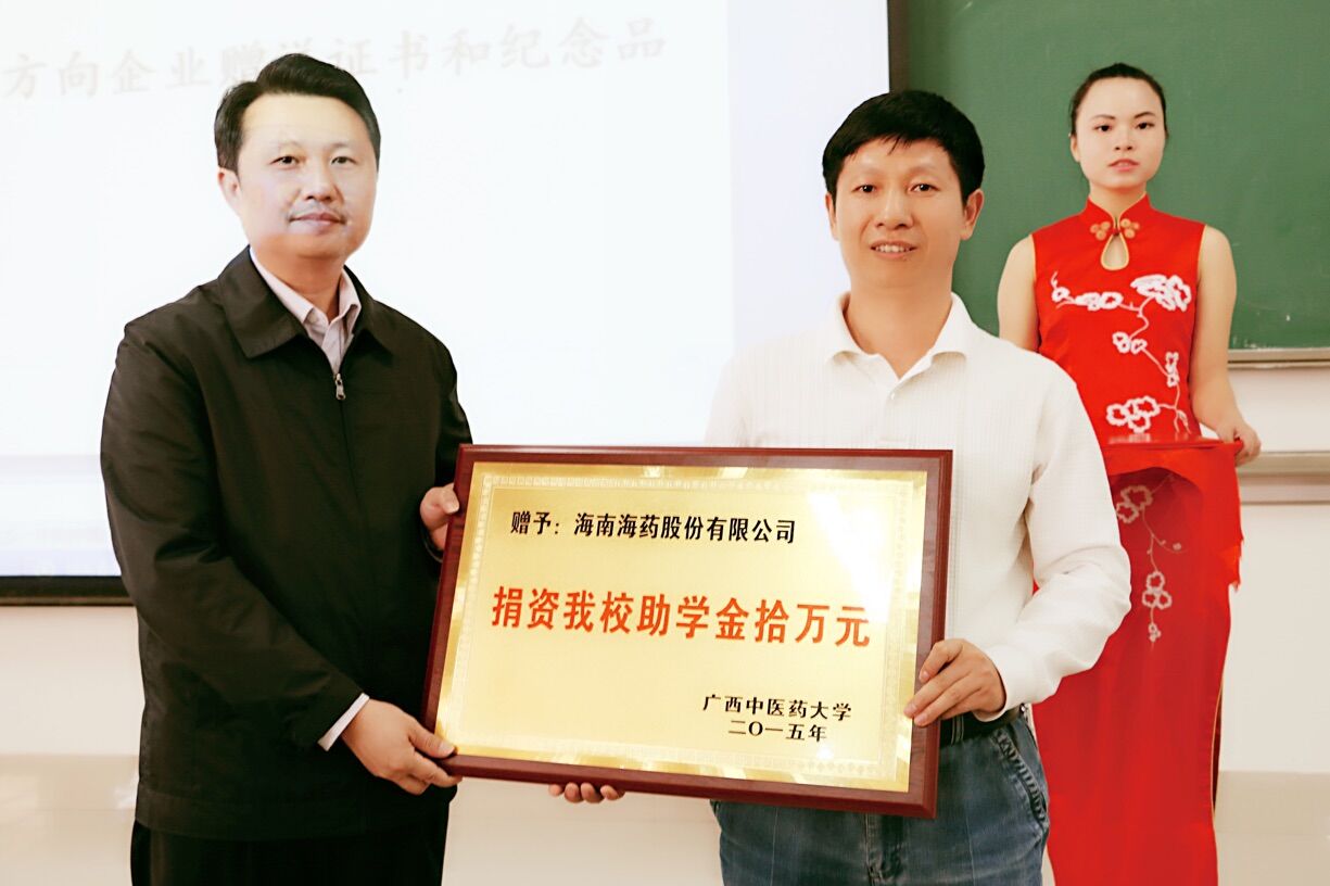 海南海药股份有限公司于2012年开始在我校设立贫困助学,每年出资10万元人民币,至今已资助了130余名家庭贫困的药学类各专业在校大学生,这对我校的人才培养及教育事业作出了很大的贡献