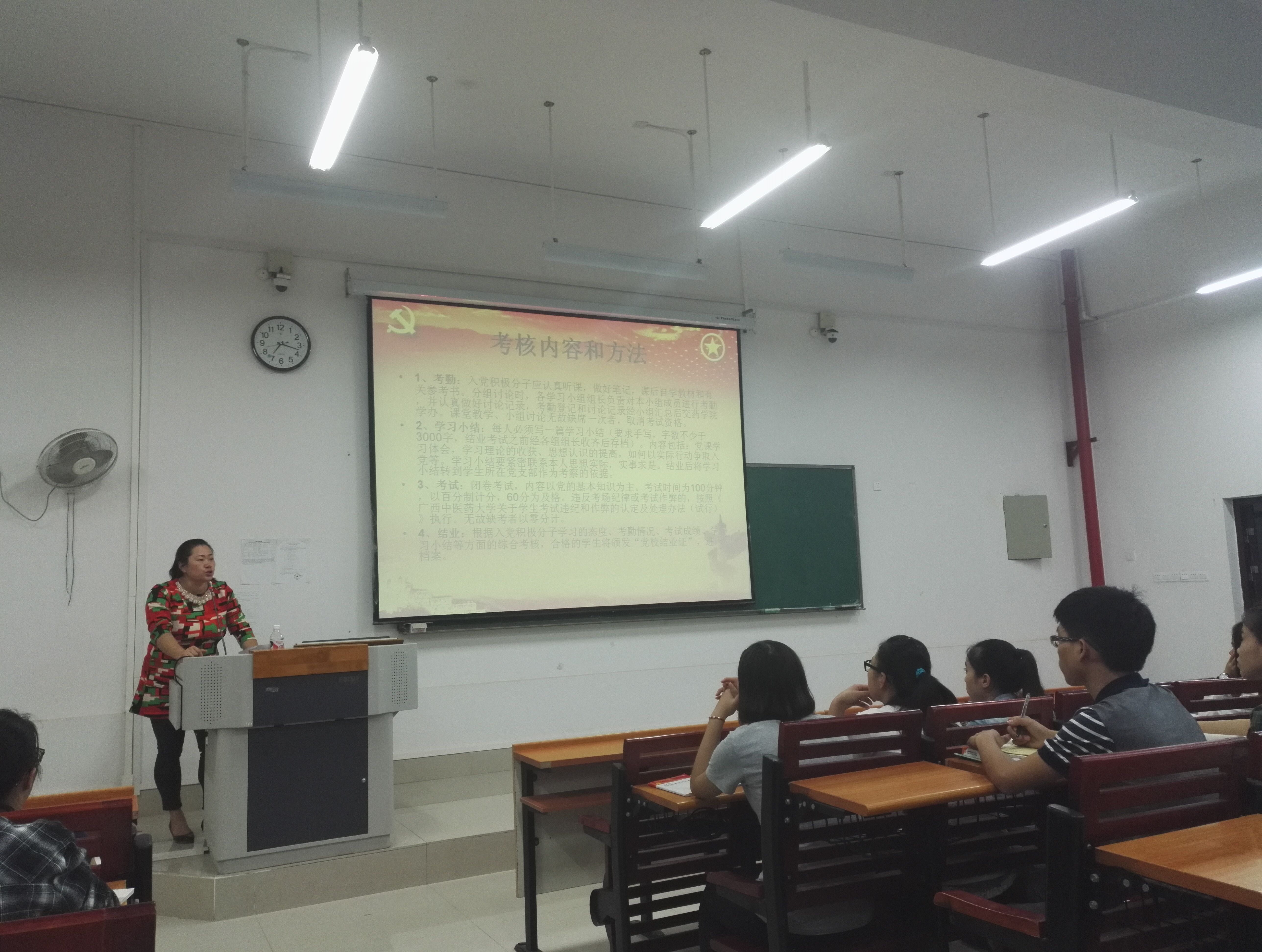 校党委组织部组织科彭定基老师在给同学们讲《党员条件与入党须知》