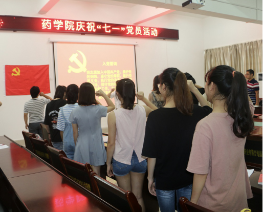 活动中,药学院党委书记蒋林指出:我们要结合岗位工作,深刻思考如何做一名合格中共党员?希望全体党员要慎独,做到政治合格,执行纪律合格,严格遵守党的政治规矩和政治纪律,做好目标建设,不忘初心,以实际行动践行我们的入党誓词。