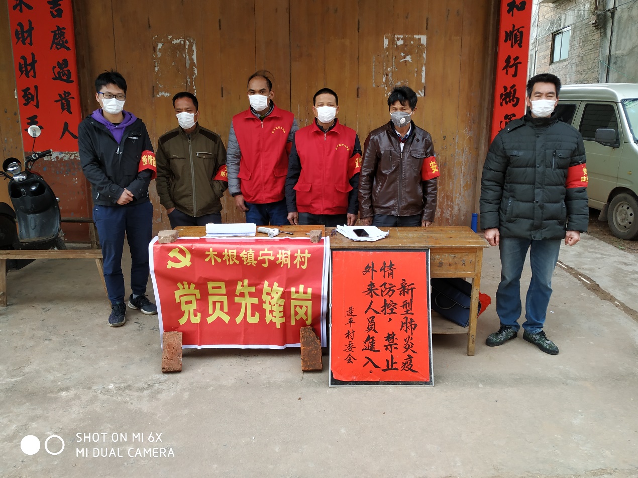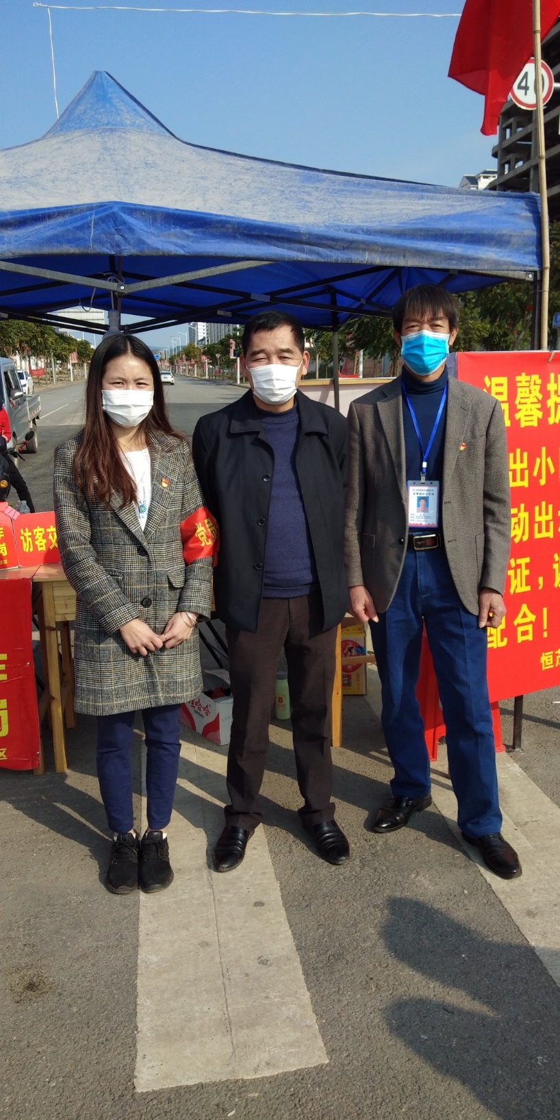 陈春棣同学(左一)在家乡参加新冠肺炎疫情防控工作