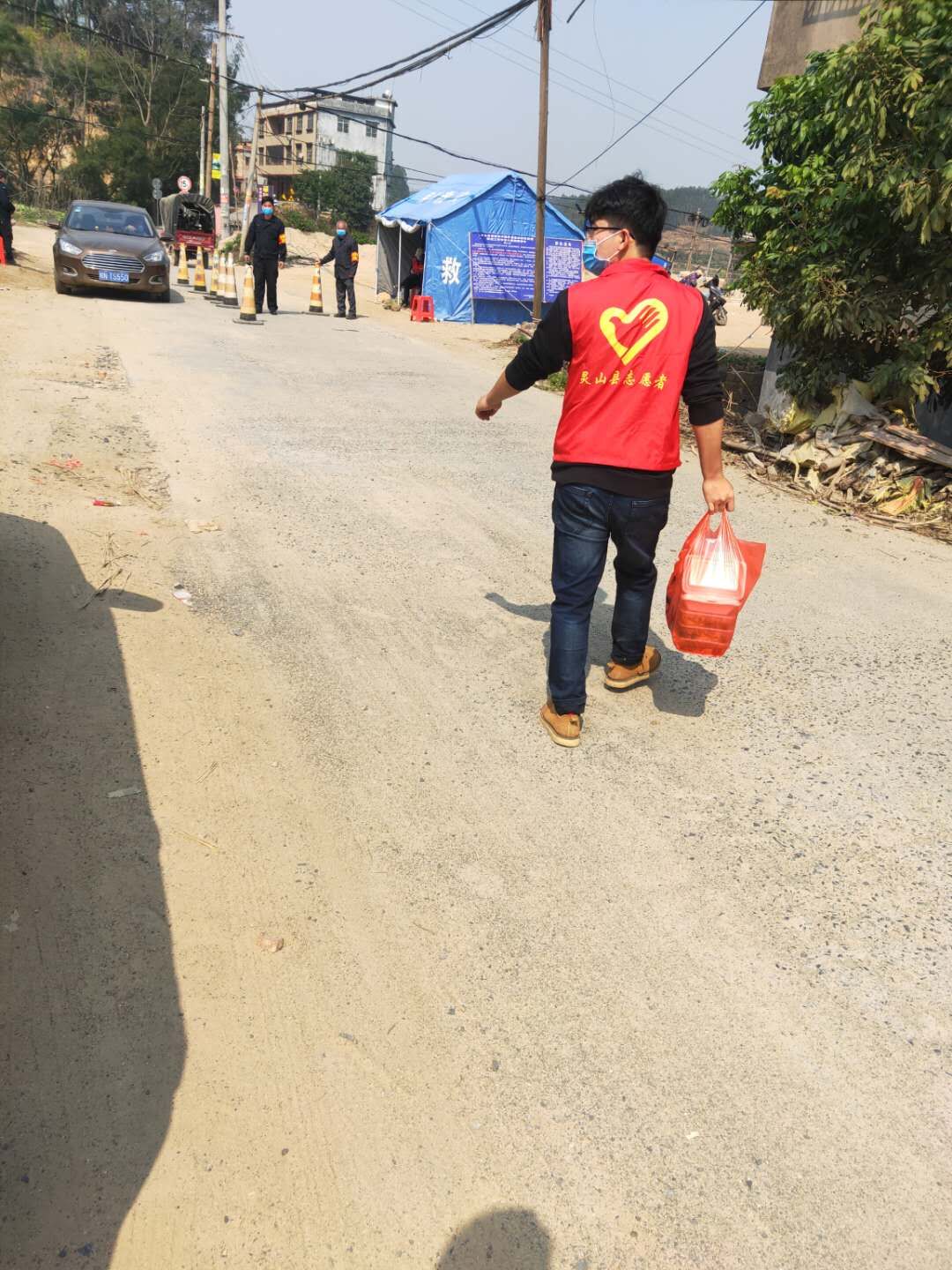 2016级药学二班李彬同学,在广西灵山县参加疫情防控志愿活动。他的工作内容是每天完成各个疫情防控点的饭点配送工作。他说:“在当前疫情严重且缺少人手的情况下,疫情就是命令,防控就是责任,共同抗击疫情,人人有责。我毅然决然参加了本地的疫情志愿者活动,我坚信在党和国家的坚强领导下,一定会消灭疫情。疫情志愿者活动虽然辛苦劳累,但是我觉得作为一名大学生,能够为家乡人民做一点力所能及的事情,我觉得非常有意义!”